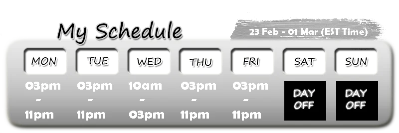 MY ACTUAL SCHEDULE